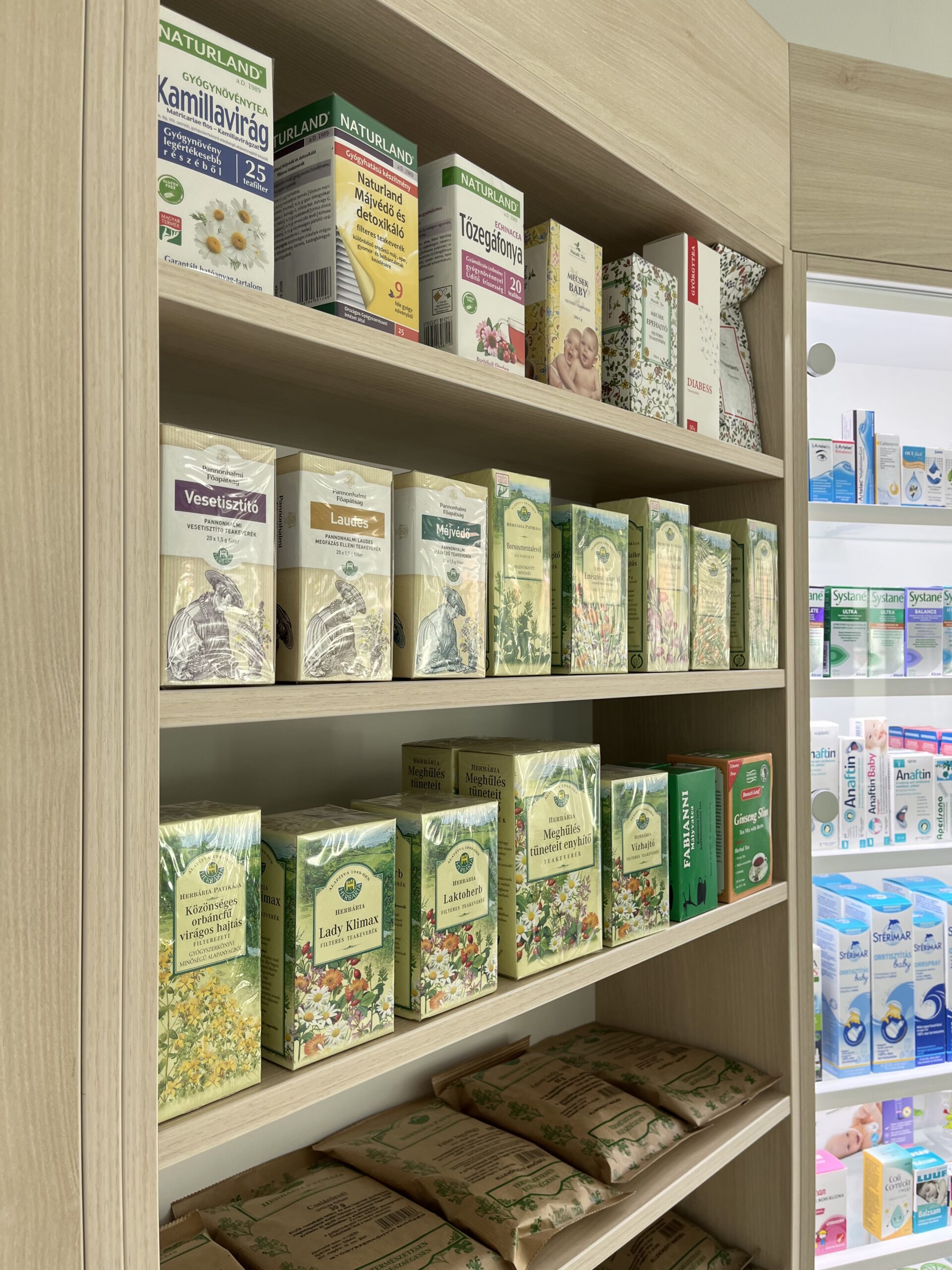 Vényköteles, vény nélküli készítmények, vitaminok, dermokozmetikumok és magisztrális készítmények is elérhetők.